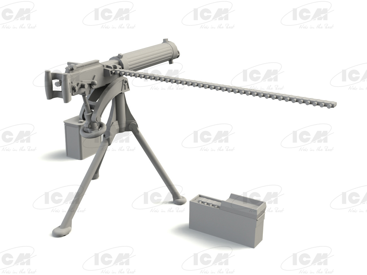 В набор входят 44 детали для сборки пулемета MG08, гильзы, пояса боеприпасов и резервуары для воды.