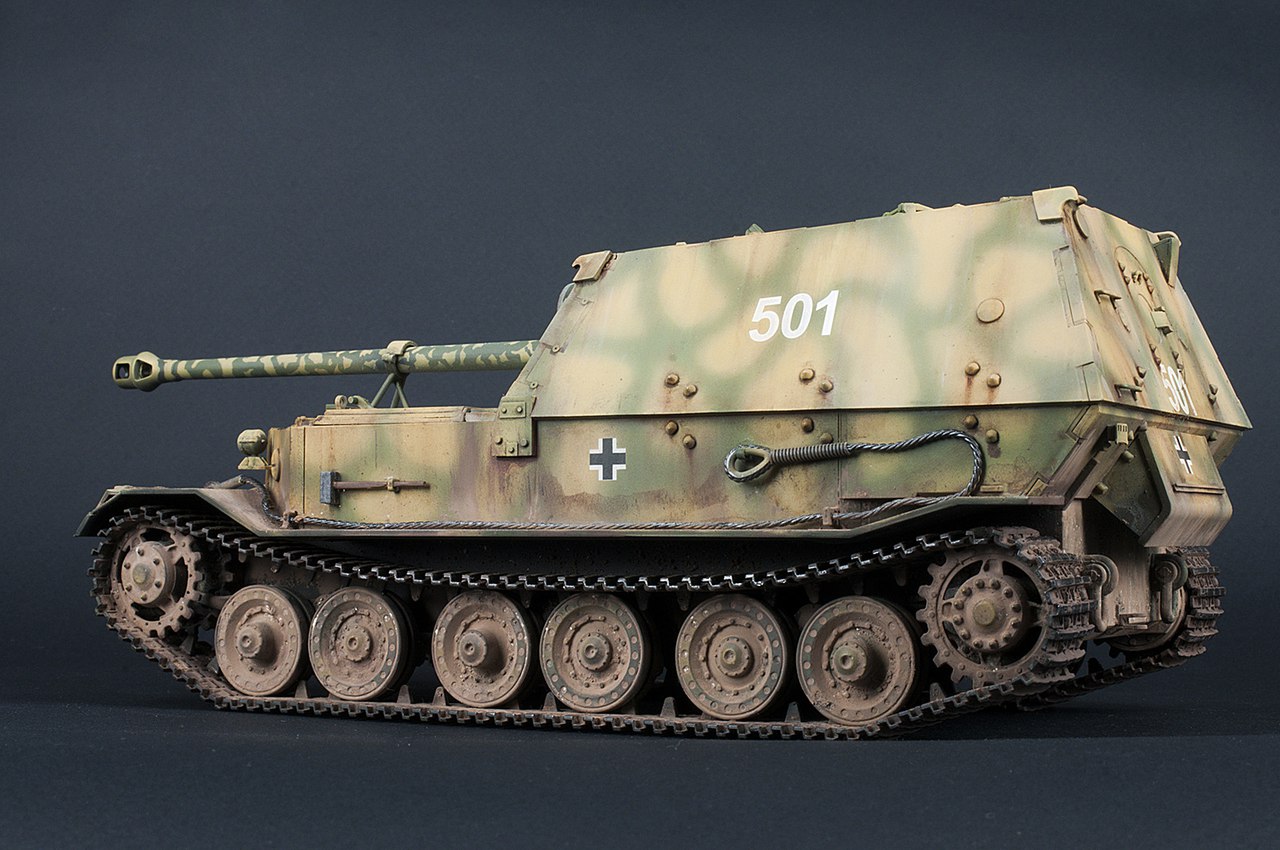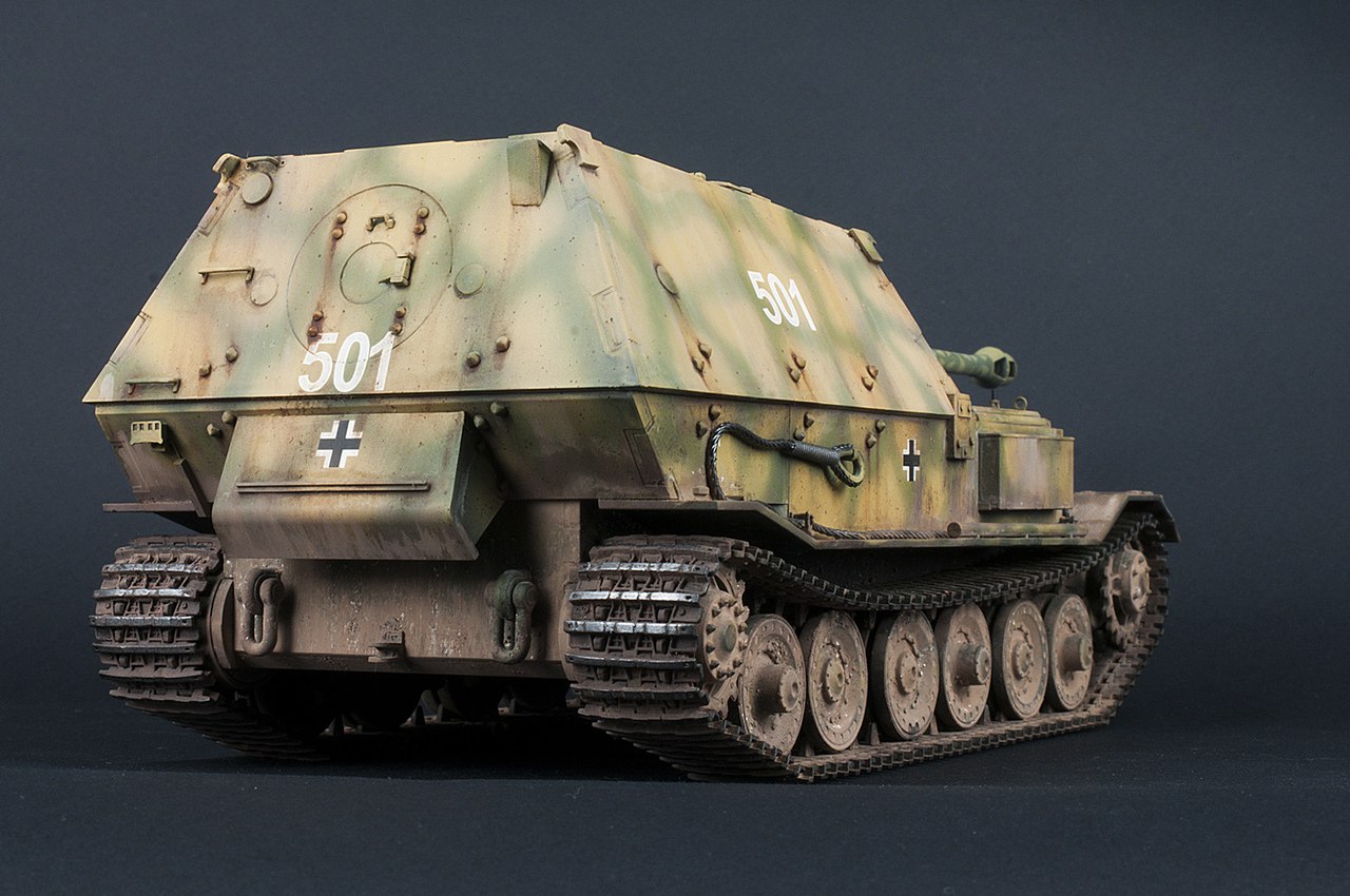 Эта боевая машина, вооружённая 88-мм пушкой, является одним из самых сильно вооружённых и мощно бронированных представителей немецкой бронетехники того периода. Несмотря на свою малочисленность, данная машина является одним из самых известных представителей класса самоходных орудий, с ней связано большое количество легенд.