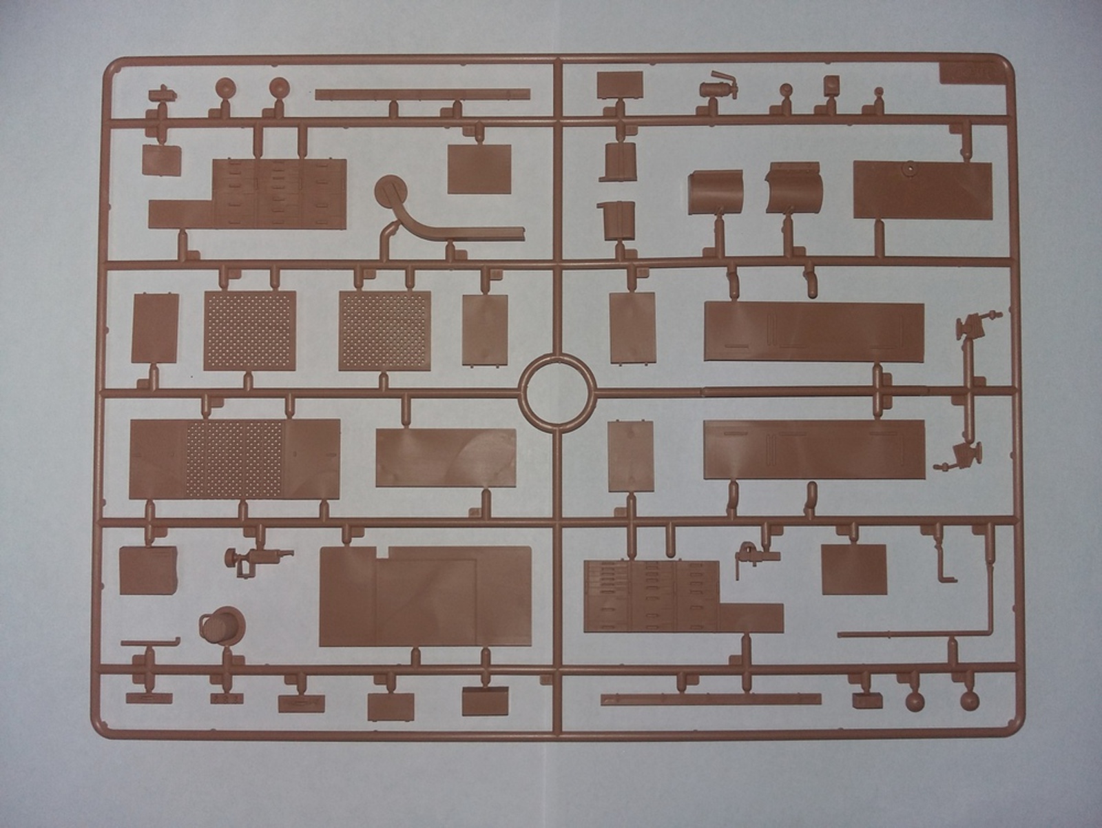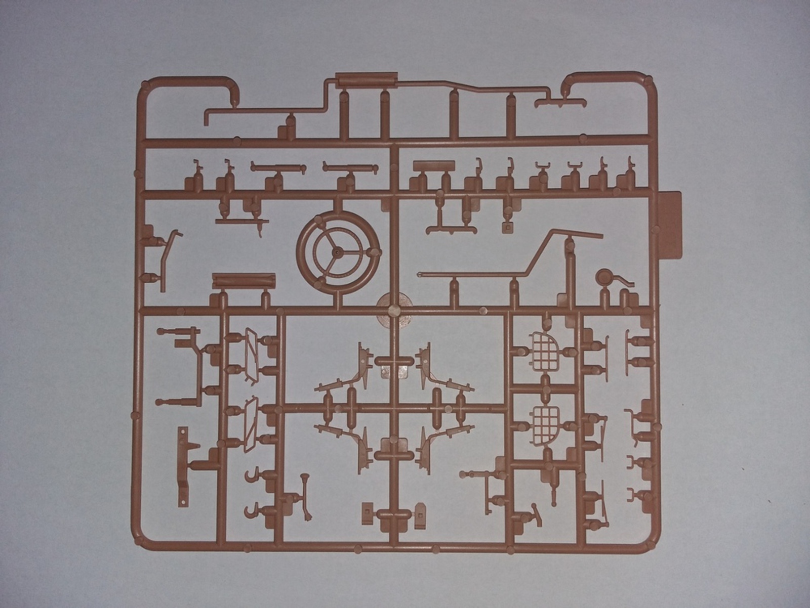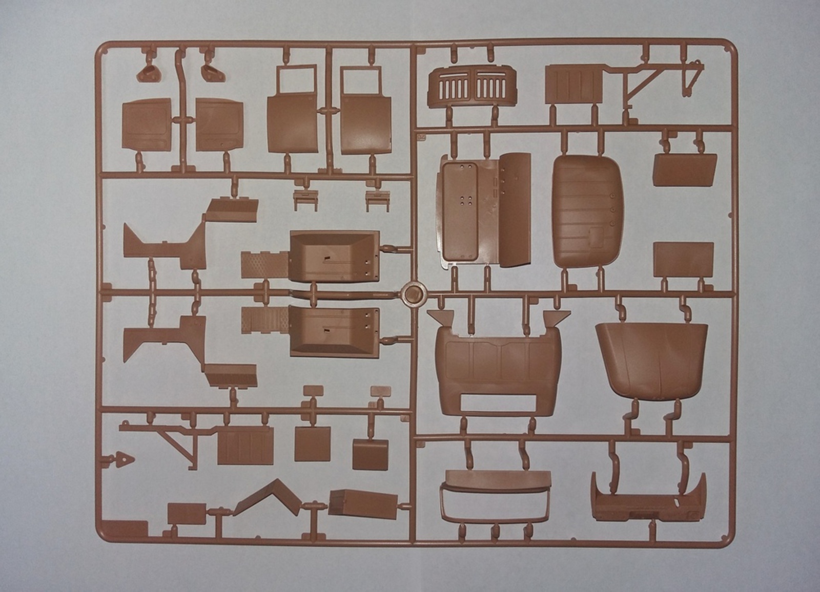 Детально проработанная сборная кабина с сиденьями, приборной панелью, элементами управления, внутренняя обшивка дверей выполнена отдельными деталями.