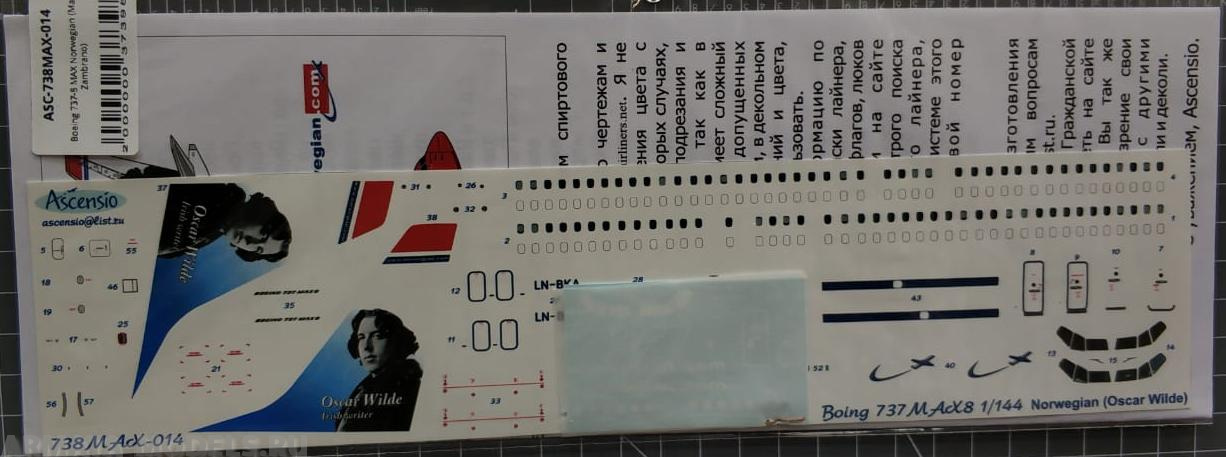 738MAX-014 Boeing 737-8 MAX Norwegian (Maria Zambrano) Ascensio в Перми, купить в интернет-магазине, цены, фото