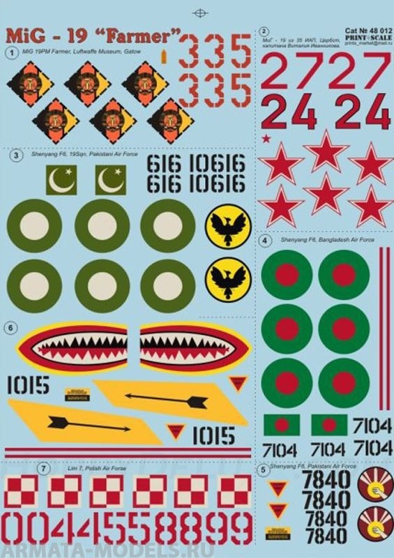 PS48-012 Декаль МиГ-19 Farmer Print Scale в Перми, купить в интернет-магазине, цены, фото