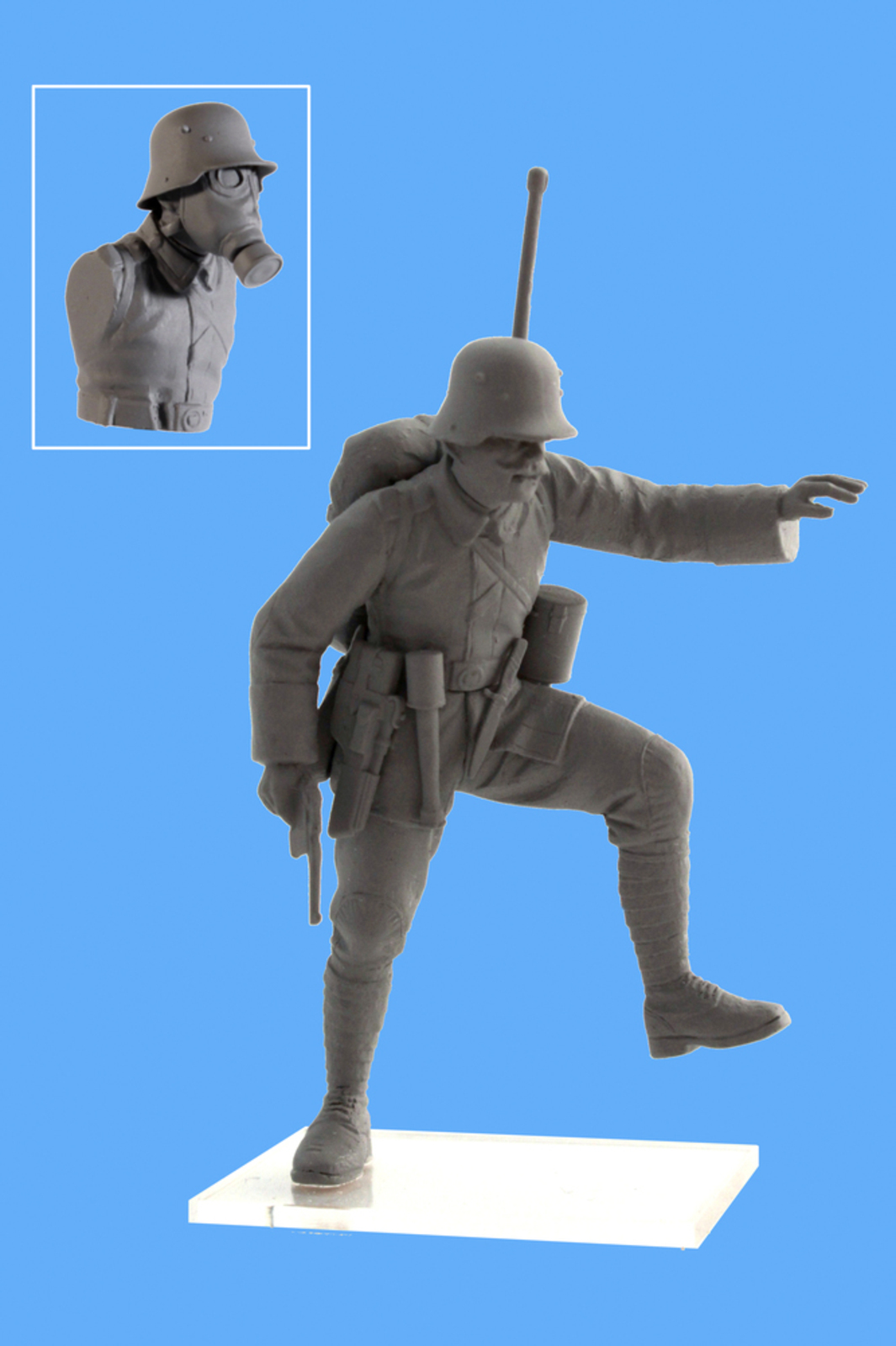 Набор включает фигуру фельдфебеля и три фигуры германских пехотинцев в противогазах периода 1918 г.