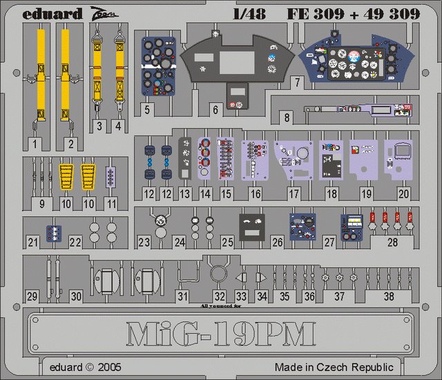 49309 Фототравление для MiG-19 PM (Экст-р+цвет. интерьер) для модели Trumpeter EDUARD в Перми, купить в интернет-магазине, цены, фото
