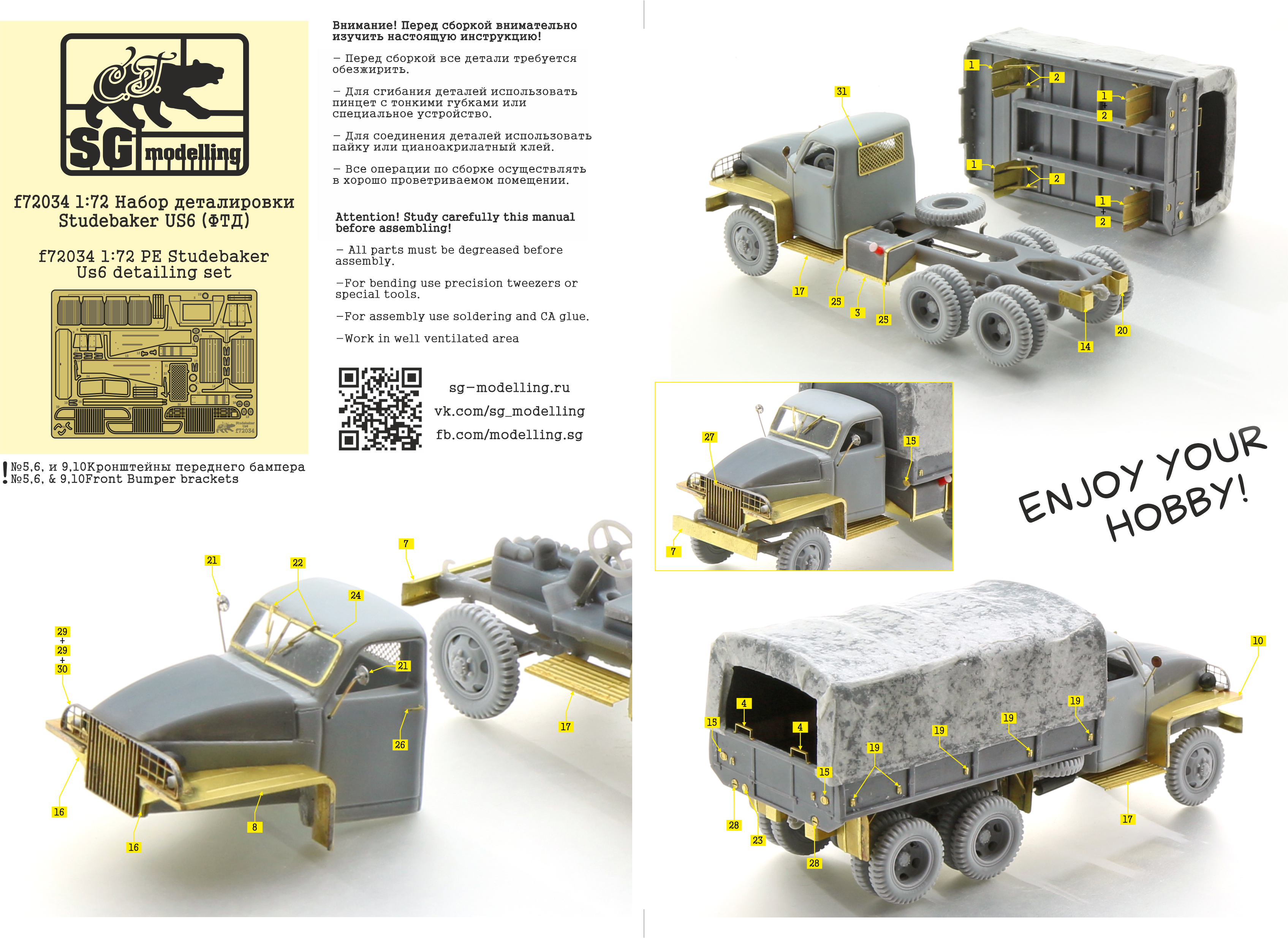 f72034 1:72 Набор деталировки Studebaker US6 (ФТД) SG modelling в Перми, купить в интернет-магазине, цены, фото