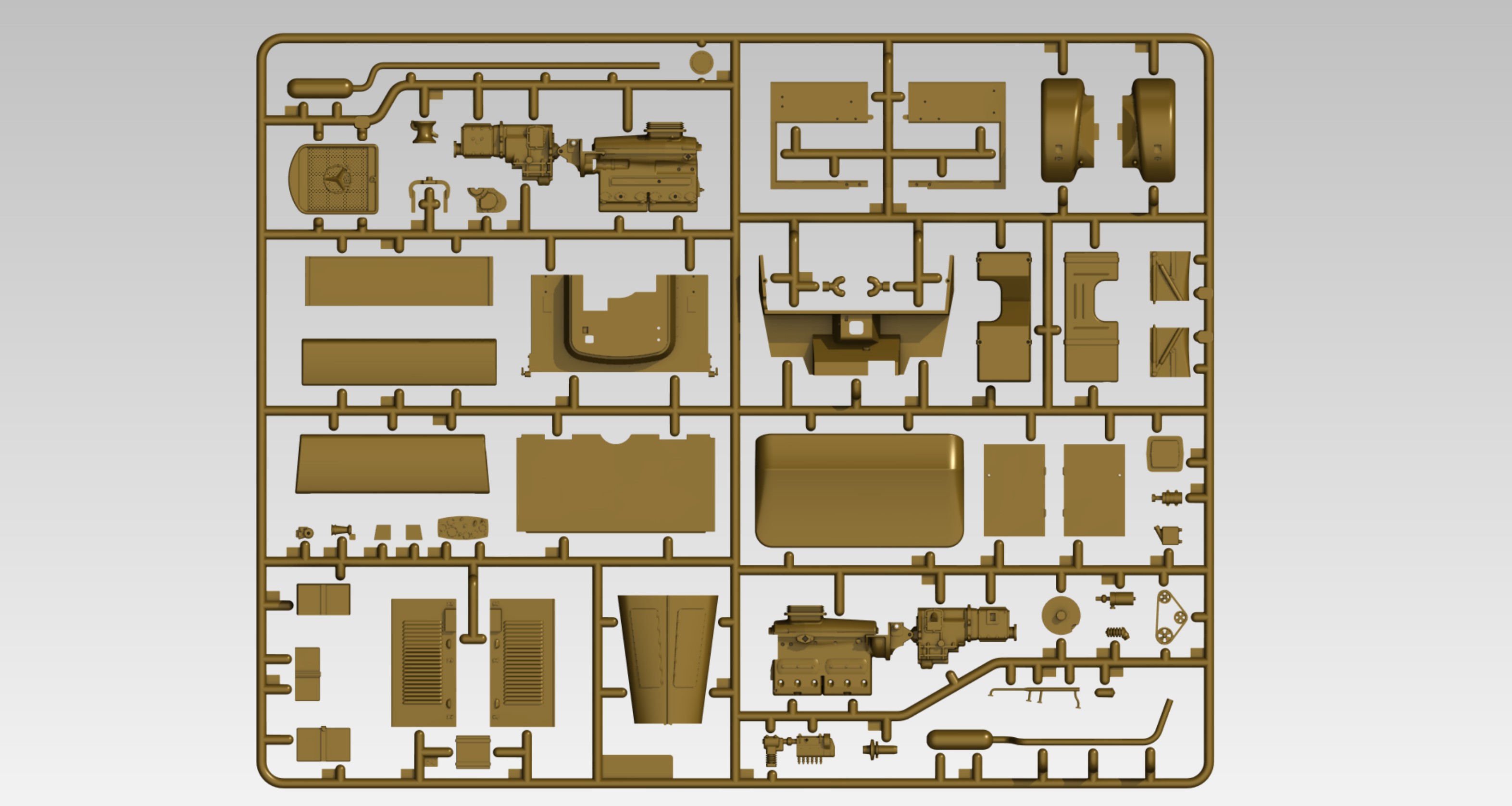 Внутренние и внешние ручки дверей, инструментальные ящики, шанцевый инструмент, зеркало заднего вида и множество других подробностей.