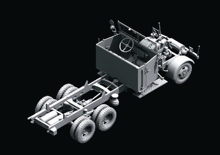 Детализированная подвеска, проработанные задние мосты, карданы, рессоры, сборная несущая рама, выхлопная система выполнена отдельными деталями.