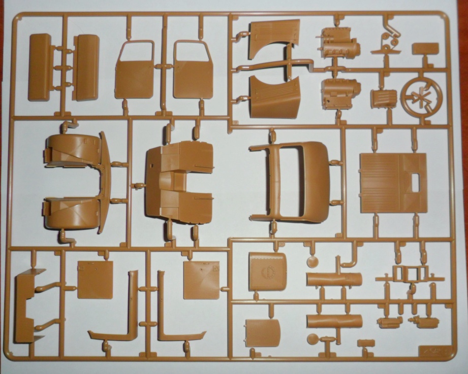 Детализированная сборная кабина с приборной панелью, элементами управления, внутренняя обшивка дверей выполнена отдельными деталями.