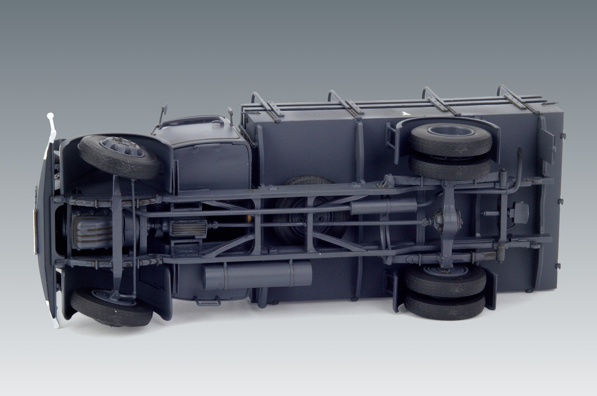 Детализированная подвеска, проработанный задний мост, кардан, рессоры, сборная несущая рама, выхлопная система выполнена отдельными деталями.