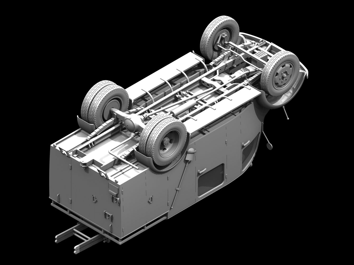 Детализированная подвеска, проработанная сборная несущая рама, задний мост, кардан, рессоры, выхлопная система выполнена отдельными деталями.