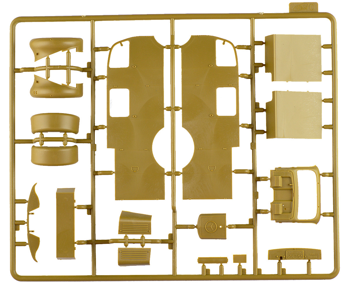 Длина модели 159 мм, 217 деталей для автомобиля и 30 деталей для прицепа, 2 варианта декалей.