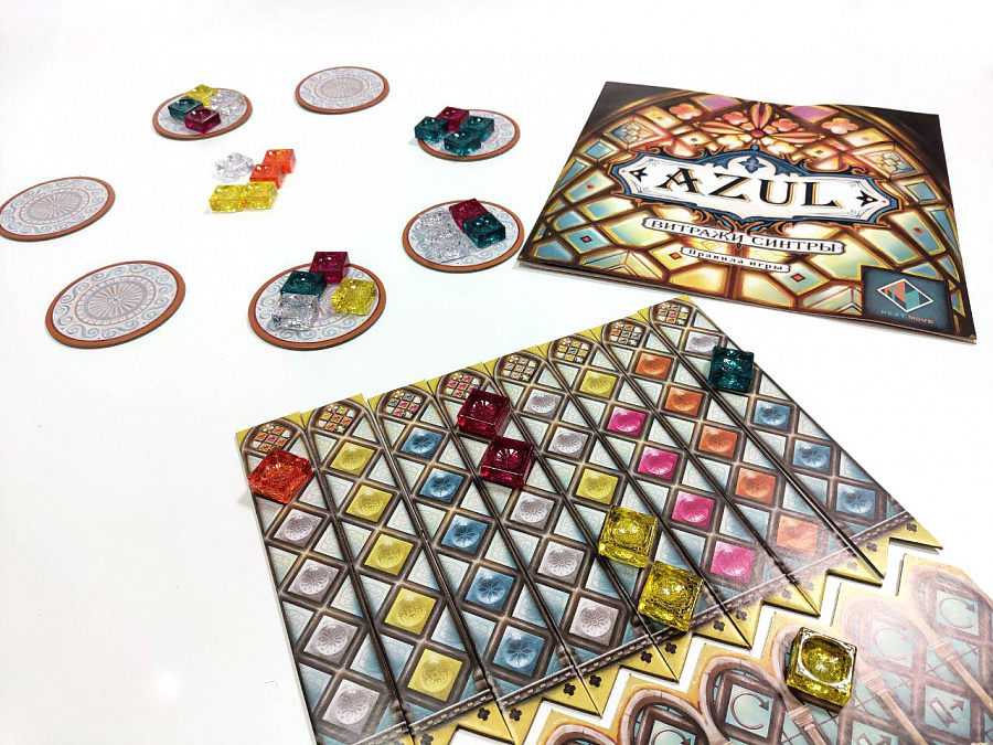 В игре «Азул. Витражи Синтры» игроки по очереди набирают разноцветные витражные стекла и размещают их в окнах дворца. 6 раундов игроки набирают очки за правильно размещенные стекла и стараются избежать штрафа за порчу ценных материалов. Тот, кто наберет больше всего очков, получает признание португальской короны и звание «лучшего мастера витражей».