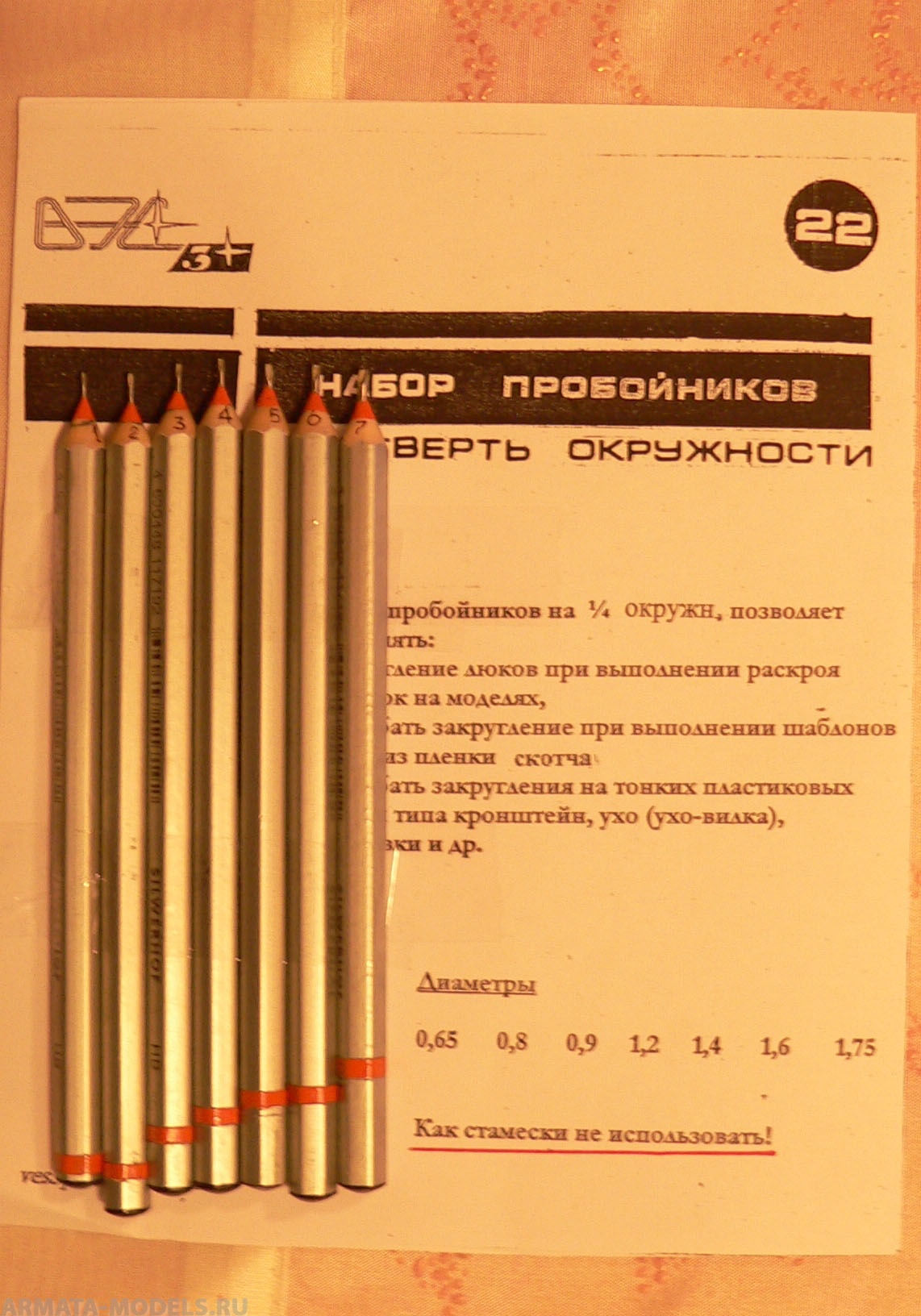 VES-22 Инструмент моделиста №22 Набор пробойников в четверть окружности ВЭС-Модель в Перми, купить в интернет-магазине, цены, фото