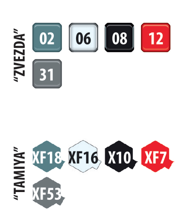 Набор деталей из пластмассы для сборки одной модели самолета. Модель собирается при помощи специального клея, выпускаемого предприятием «Звезда».
