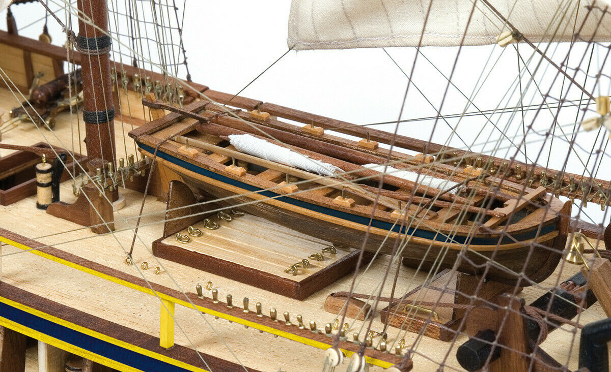 Испанская фирма OcCre предлагает Вам сделать копию этого парусника в адмиралтейском стиле. При этом один из бортов модели не закрыт и можно видеть внутреннее устройство корабля. Второй борт полностью закрыт, как и положено классической модели.