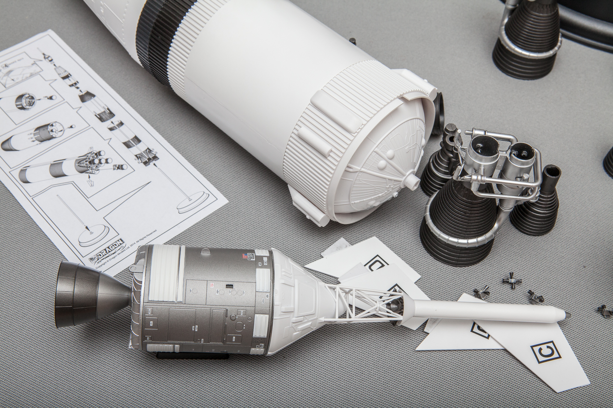 Данная модель - не совсем сборная. Это уже готовый и окрашенный "кит", который нужно только собрать в единое целое. Модель знаменитой ракеты Сатурн V, самой мощной и тяжелой ракеты, которая выводила полезную нагрузку на орбиту. Сатурн V использовался при реализации программы "Аполлон", результатом которой стало шесть высадок астронавтов на Луну.