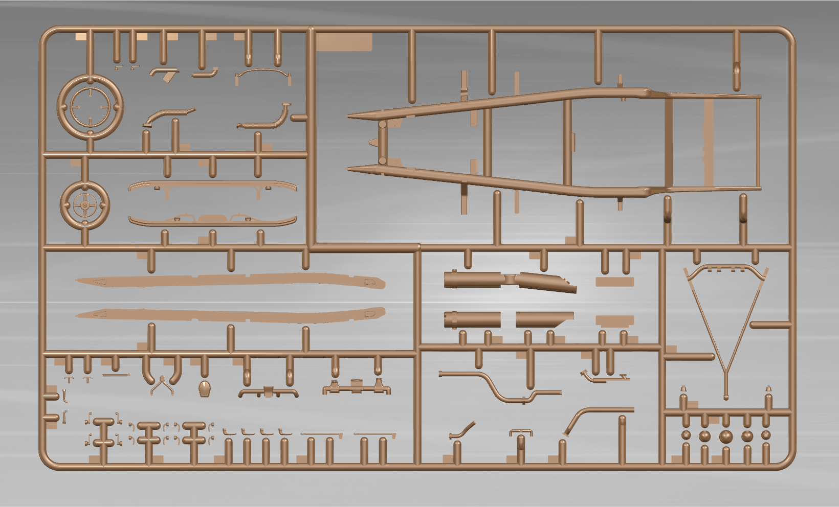 Детализированные мосты, подвеска, трансмиссия, несущая рама выполнена единой деталью, выхлоп выполнен отдельными деталями.