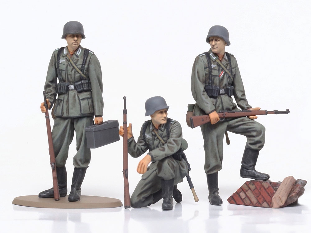 Сборная модель из пластика. Набор фигур немецких солдат времён второй мировой войны. В наборе десять пехотинцев: 6 с винтовками, 2 с пп и 2 с ручными пулеметами.
