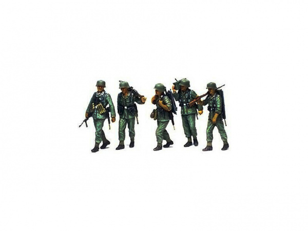 Сборная модель из пластика. Фигуры пяти немецких пулеметчиков с MG42, MG34, MP40 и KAR98K на марше (5 фигур).
