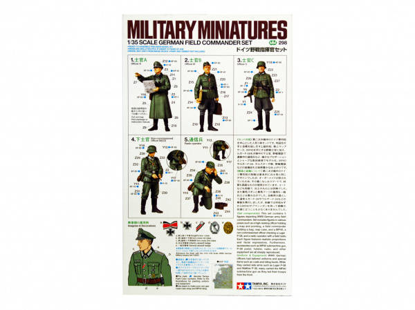Сборная модель из пластика. Фигуры немецких офицеров и радиста с различным вооружением и снаряжением.