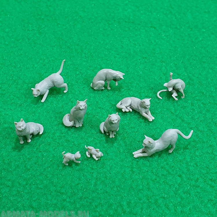 Набор из восьми фигурок кошек и двух играющихся котят - всего 10 шт.