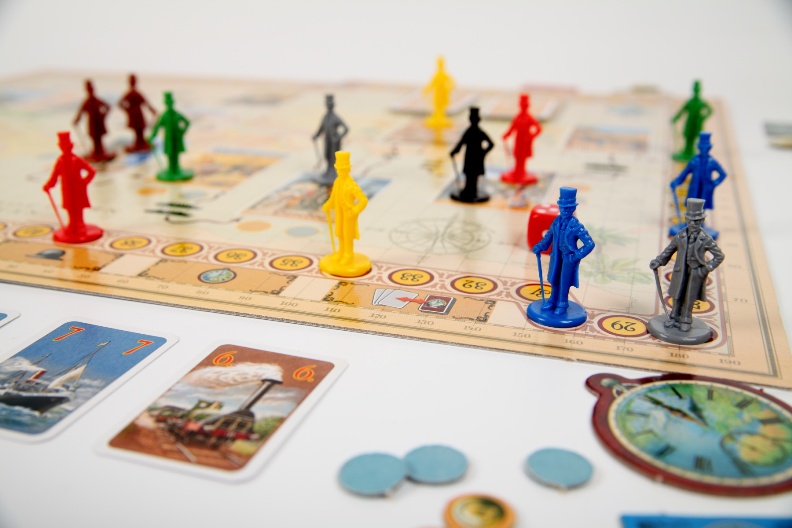 Очень интересная и увлекательная настольная игра по одноименному произведению Жюля Верна. Нестареющий сюжет, интересный дизайн. Игрокам предстоит совершить кругосветное путешествие из Лондона за 80 дней (в игре – 80 ходов). Для этого у них в распоряжении железные дороги и корабли. Игроки набирают карточки действий и исходя из них применяют различные маршруты. Побеждает тот, кто лучше всего распланирует свое путешествие.