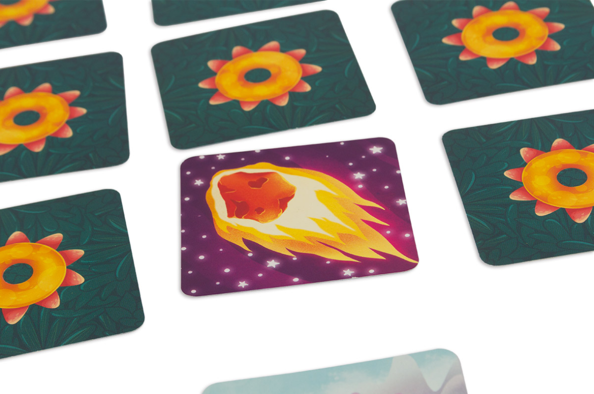 Открывая карточки на поле, постарайтесь найти разных динозавриков, чтобы забрать их себе. Однако если динозаврики на открытых карточках повторятся, вам придётся пропустить ход. Открыть ещё одну карточку или остановиться?!