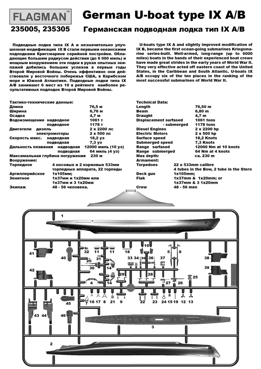 235305F Германская подводная лодка тип IX A/B Profi Set Флагман в Перми, купить в интернет-магазине, цены, фото