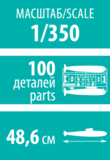 Набор деталей из пластмассы для сборки одной модели подводной лодки.