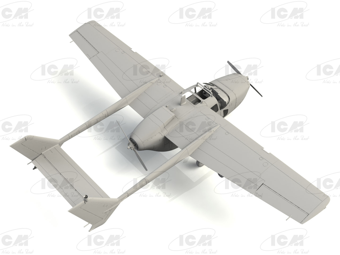 Как и гражданская версия, Skymaster представлял собой недорогой двухмоторный самолет с поршневым двигателем, с одним двигателем в носовой части самолета и вторым двигателем в задней части фюзеляжа.