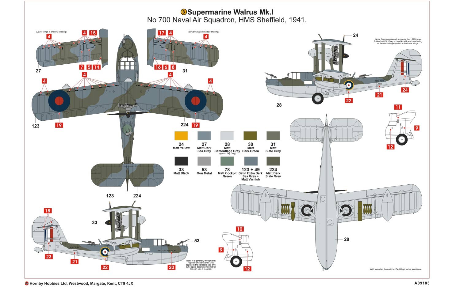 Walrus Mk.I - летающая лодка-амфибия многоцелевого назначения (морской разведчик, связной самолет, корректировщик артиллерийского огня, легкий бомбардировщик, противолодочный и спасательный самолет). Она строилась по общепринятой в то время бипланной схеме. Экипаж состоял из трех человек - летчик, штурман и стрелок-радист.