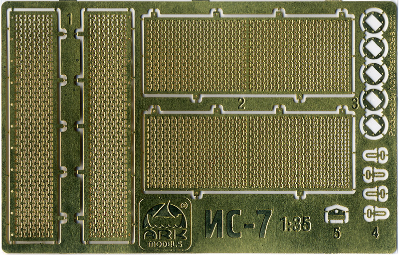 В наборе качественные пластиковые части дополнены деталями из смолы (18) и металла (14), благодаря которым можно собрать точную модель танка ИС-7 экземпляр №3, представленного в Центральном музее бронетанкового вооружения и техники в городе Кубинка.