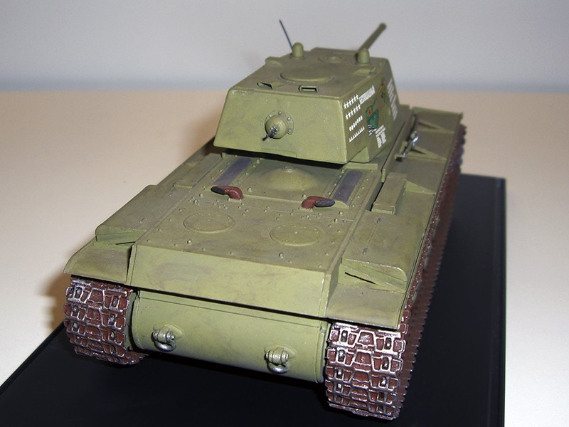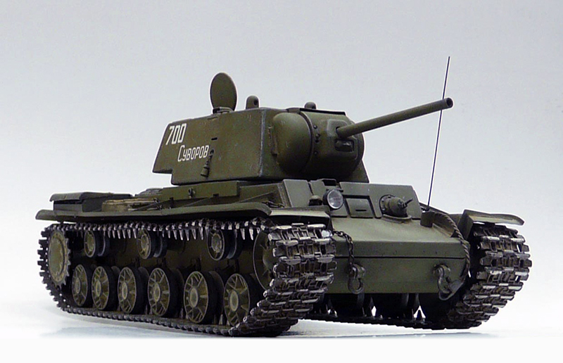 Тяжёлый танк КВ-1 («Клим Ворошилов») - первый отечественный тяжёлый танк, имевший однобашенную компоновку. Принят на вооружение в 1939 году. Сложное положение на фронтах в 1941 году, эвакуация предприятий и нехватка квалифицированной рабочей силы привели к необходимости внести изменения в тяжёлый танк КВ-1 с тем, чтобы упростить его конструкцию и удешевить производство, не снижая темпов выпуска. На танках образца 1941 года была переработана конструкция корпуса и башни, внесены изменения в ходовую часть. Всего с февраля 1940 года по август 1942 года было выпущено 2769 танков КВ-1, которые активно использовались в сражениях начального периода Великой Отечественной войны.