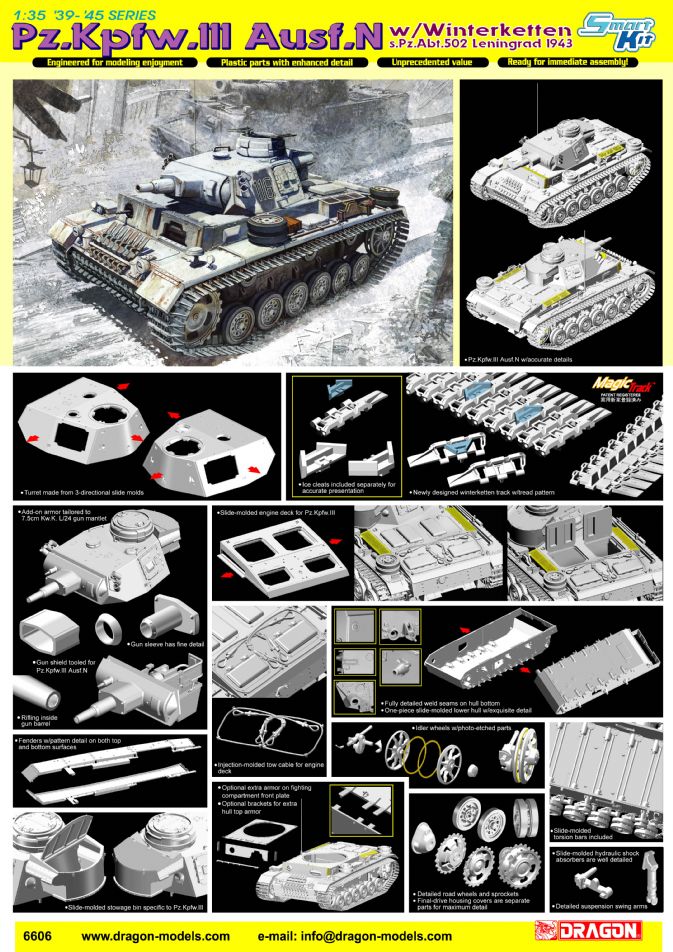 6606Д Танк Pz.Kpfw.Ill Ausf.N s.Pz.Abt.502 (зимняя версия) Ленинград 1943 Dragon, 1/35 в Перми, купить в интернет-магазине, цены, фото