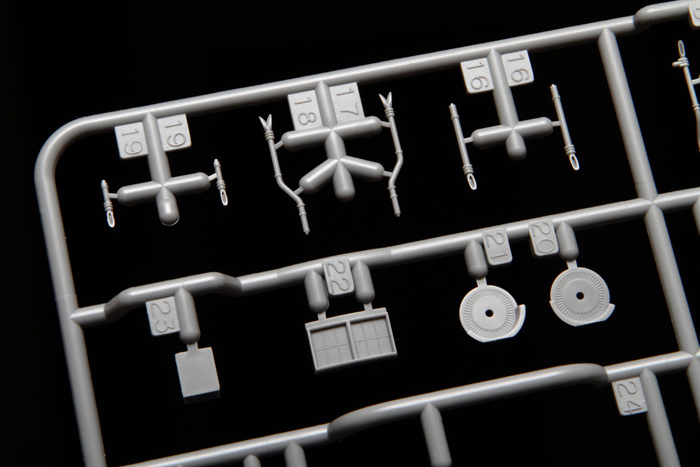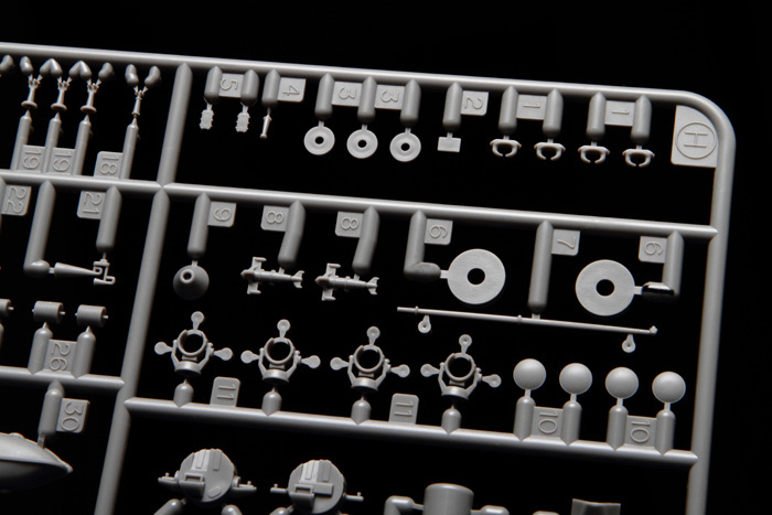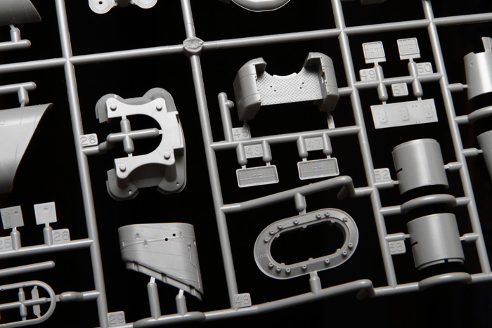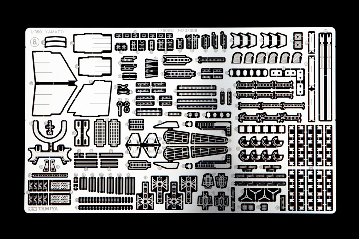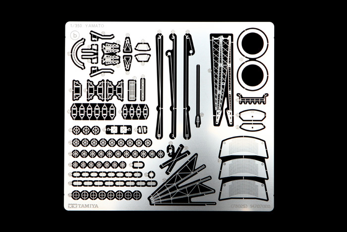 Фототравлёные детали для мачт, межбалубных лестниц, вентиляционных решёток, радара, мачты крана, катапульт и катапультных тележек, различных креплений и проработки множества мелких деталей.
